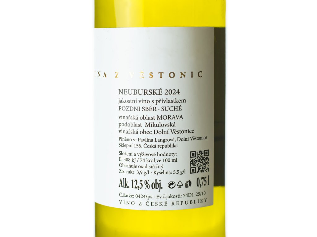 Neuburské 2024 je suché bílé víno z pozdního sběru, které pochází z vinařské oblasti Dolní Věstonice.
