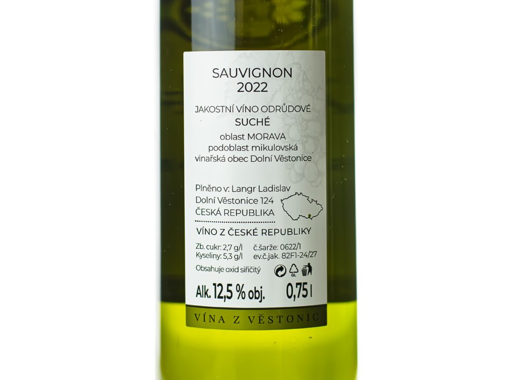 Sauvignon 2022 je víno známé svou svěží aromatikou, která kombinuje tóny citrusů a bylin s jemným minerálním charakterem. Toto suché víno z Mikulovské podoblasti nabízí vyváženou kyselinku a lehké tělo, které osvěží a potěší při každém doušku. Díky svému nízkému obsahu zbytkového cukru a alkoholu 12,5 % je ideálním společníkem pro letní večery i lehká jídla.